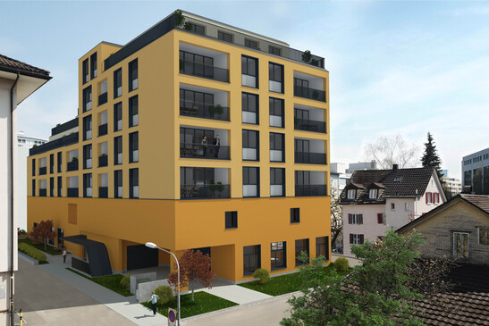 Zwei Gehminuten vom Bahnhof Zürich Altstetten entfernt, entsteht ein neues Mehrfamilienhaus mit über 30 Wohnungen auf sieben Geschossen. Da die knappen Platzverhältnisse eine Zufahrt für die Feuerwehr nicht überall zulassen, planten die Ingenieure von Timbatec ein Sicherheitstreppenhaus – aus Holz.