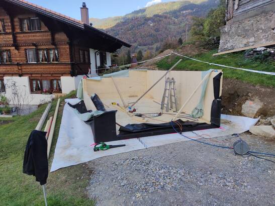 Was lange unmöglich schien, ist heute Realität: Holz kann auch für erdberührende Bauteile wie Untergeschosse oder Garagen eingesetzt werden. Damit solche Bauteile künftig serienmässig aus Holz hergestellt werden können, klärt die Berner Fachhochschule noch einige Forschungsfragen. In Schattenhalb BE wird zurzeit eine Garage komplett aus Holz gebaut.