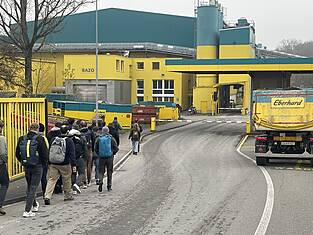 Der Besuch bei Eberhard Unternehmungen am Nachmittag zeigte uns sehr direkt, welche Rolle Recycling heute in der Bauwirtschaft spielt und wie viel Potenzial in gut organisierten Prozessen steckt. Bei der Arealführung durchs EbiMIK bekamen wir einen klaren Blick darauf, wie Bauabfälle getrennt, aufbereitet und wieder in den Kreislauf gebracht werden. Ein grosses Merci an die Teams von Eberhard Unternehmungen für die offene Führung und die spannenden Einblicke.