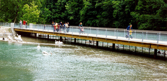 Da die Schädigungen unterschiedlich schwer ausfielen, wurden auch verschiedene Massnahmen getroffen. Im Bereich der Pelikane, Biber, Fischotter und des Luchses wurde ein Steg mit Aussichtsplattformen geplant, der auch folgende Hochwasser überdauern soll. Der Steg Die rund 140 m Steglänge wurden aus Einfeld-Trägern von 10 m Länge hergestellt. An 2 Stellen ragen Plattformen rund 10 m über das Wasser hinaus.