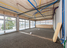 Le nouvel hôpital psychiatrique de Fribourg, de quatre étages, est entièrement en bois. Les plafonds et les murs porteurs de la construction sont en panneaux de bois. ont été réalisés en panneaux de bois contreplaqué. Seules les poutres, qui ont été intégrées dans les plafonds en bois sont en acier en raison des grandes portées. en acier en raison de leur taille. La cage d'escalier et la cage d'ascenseur du bâtiment sont également en bois. nouveau bâtiment.