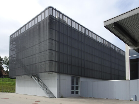 La salle Mummenschanz a été conçue à l'origine pour l'Expo 02. a été conçue pour l'occasion. Le bâtiment en bois de la troupe suisse, qui connaît un grand succès international troupe de théâtre se trouvait alors sur l'arteplage biennois de l'exposition nationale. Après Expo 02, la construction en bois, qui peut accueillir 470 personnes, a été démontée. et reconstruite à Villars-sur-Glâne, près de Fribourg. C'est là que se trouve la Depuis, la salle Mummenschanz fait partie du centre culturel Espace Nuithonie, qui abrite entre autres également une autre salle, une salle de répétition et une salle d'exposition. abrite également une salle de spectacle.