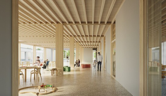 La commune de Fribourg construit un nouveau complexe scolaire comprenant douze salles de classe, quatre salles de maternelle et une double salle de gymnastique. Le complexe scolaire est réparti en trois bâtiments Minergie-P-Eco en bois. Timbatec planifie tous les services d'ingénierie de la construction en bois.