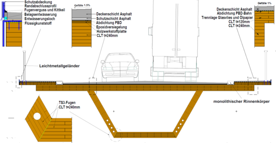 Il existe déjà des premières applications prometteuses du bois dans la construction d'infrastructures. Les murs antibruit, les ponts et les passages à faune construits en sont de bons exemples. Pour que de grands ponts puissent être construits, notamment des ponts dans l'axe du sens de la circulation, il faut poursuivre les recherches.
