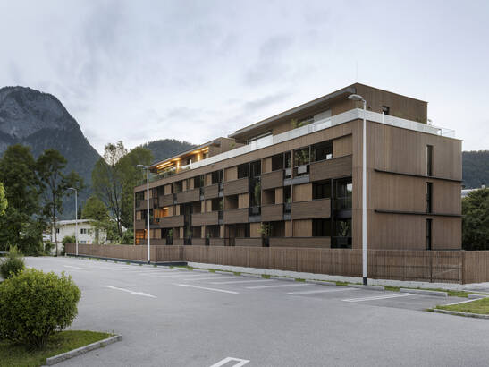 Le «Naturquartier Weissache» est le plus grand immeuble d'habitation du Tyrol et un bon exemple de l'évolution de la construction en bois au cours des dernières années. «Le bois est une matière première renouvelable et disponible dans la région. En ces temps de crise climatique, et notamment en raison du Corona, l'importance des matériaux locaux et des courtes distances de transport augmente», explique Josef Feichtner, directeur d'Unterberger Immobilien. Le matériau de construction naturel obtient les meilleures notes non seulement pour les possibilités de conception esthétique et l'atmosphère agréable, mais aussi en ce qui concerne l'isolation thermique, l'efficacité énergétique, la protection contre l'incendie et la longévité.
