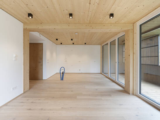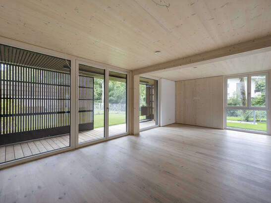 Le chef de projet Florian Huber voit un autre avantage dans le temps de construction plus court : «Nous avons pu réaliser la construction brute en bois, y compris les fenêtres, les balcons et la façade, en seulement dix semaines. Grâce aux éléments en bois préfabriqués, la phase de construction a été réduite de six à sept mois par rapport aux méthodes de construction traditionnelles». Dans ce projet phare, le bois n'est pas seulement utilisé pour la construction du bâtiment et la façade, mais aussi à l'intérieur, en partie de manière visible dans les plafonds et les murs. Des matériaux respectueux de l'environnement et des solutions de construction durables permettent aux 34 appartements en copropriété d'obtenir le plus haut standard de qualité «klimaaktiv Gold».