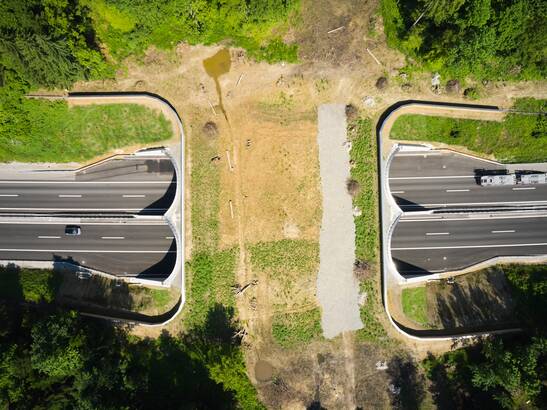 Lorsque les animaux traversent l'autoroute A1 près de Suhr, ils ne remarquent pas qu'ils passent sur le premier pont pour animaux sauvages de Suisse, recouvert de bois. Pour eux, il est important que leurs territoires de l'autre côté de l'autoroute soient à nouveau accessibles. Comme les voies de communication coupent les habitats de la faune sauvage, l'Office fédéral de l'environnement définit des corridors faunistiques d'importance suprarégionale qui sont rétablis par des ouvrages appropriés. Entre Gränichen et Suhr, la construction en bois de 50 mètres de large permet aux animaux sauvages de traverser l'autoroute en toute sécurité.