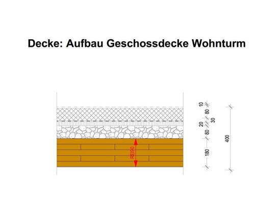 Les murs de la cage d'escalier nécessaire sont construits de manière résistante au feu avec un revêtement ignifuge et incombustible sur les deux faces, même en cas de sollicitation mécanique supplémentaire. La réalisation de la cage d'escalier en bois massif constitue une dérogation au §35 (4) de la LBO Schleswig-Holstein, selon lequel les murs des cages d'escalier nécessaires de la classe de bâtiment 5 doivent présenter le type de construction de murs coupe-feu et ceux-ci doivent être constitués de matériaux de construction incombustibles.