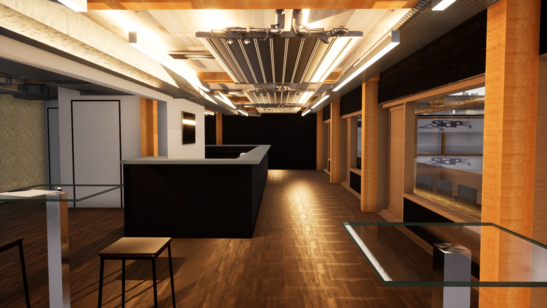 Le site Dolci Architects à Yverdon et Stähelin Partner à Zurich ont conçu l'arène. Delémont a développé l'arène. Dans la visualisation de Dolci Architects, on peut voir la future loge VIP avec les piliers et la structure du plafond en bois. est visible.