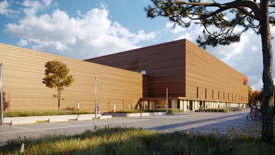 Une nouvelle patinoire en bois est en cours de construction à Porrentruy, dans le canton du Jura. Depuis fin novembre 2019, les artisans du consortium Batipro SA et JPF-Ducret SA montent la construction avec du bois provenant des communes environnantes. Timbatec est responsable de toutes les prestations d'ingénierie du bois.