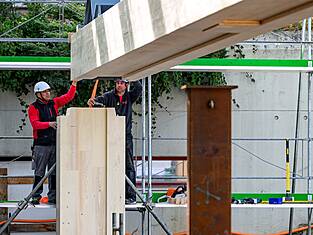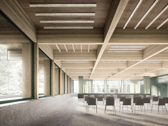Les bâtiments scolaires en bois sont écologiques et efficaces. L'école de Wiesental démontre que même de très grands et vastes projets éducatifs peuvent être réalisés en bois, car ce matériau de construction est durable et stocke le CO₂. Grâce au degré élevé de préfabrication, les bâtiments en bois sont souvent construits plus rapidement que ceux construits avec d'autres matériaux, ce qui permet de mettre les espaces à la disposition des élèves plus tôt, et sont donc privilégiés par les communes progressistes.