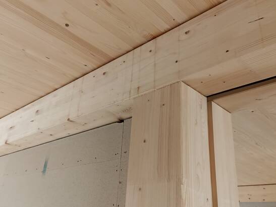 LysP8, en tant que projet de construction en bois, répond à des normes de durabilité élevées. Un grand nombre de bâtiments bien conservés, mais usagés ont été réutilisés, notamment des éléments pour le plafond en bois massif qui recouvrait autrefois le circuit de Formule E de Zurich, ainsi que des plaques de plâtre fermacell® pour les murs et des plaques ondulées pour le toit. Des bandes de liège ont été appliquées sur les poutres d'étage en bois, ce qui permet d'une part de découpler et d'améliorer les bruits de pas et les bruits ambiants, et d'autre part de former un joint d'ombre optique au plafond (voir photos ci-dessous).Tous les matériaux réutilisés apportent une contribution précieuse à la construction respectueuse des ressources.