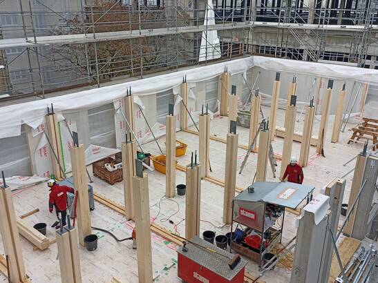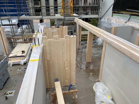 Le montage des programmes de bâtiments en bois par la société Stamm Bau AG, Holzbau, Arlesheim avance rapidement. Nos équipes du service de planification des travaux ont été sollicitées en amont pour effectuer des clarifications et des travaux préparatoires complets concernant la collecte et le traitement des informations et des documents nécessaires.