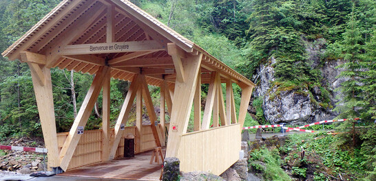 Conseillère d'Etat, Mme Marie Garnier, ainsi que d'autres orateurs ont souligné lors de l'inauguration l'importance de cet ouvrage fascinant : il est un symbole du reboisement effectué il y a 125 ans et un élément central de la gestion actuelle de la forêt de protection. Le pont relie les districts de la Singine et de la Gruyère et a reçu un certificat pour l'utilisation de bois suisse.