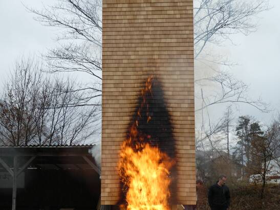 Shingle facades are particularly aesthetic when they wrap around the entire building without being interrupted by aprons and fire bars. It then remained to be judged whether a fire would spread outside at an inadmissible rate or "self-climb". The spread of flames depends on the dimension and layering of the shingles as well as their deformation behavior. For the new construction of apartment houses Wolf and Edelweiss in Andermatt Timbatec determined the fire behavior of such a facade in fire tests.