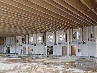 The new school complex Ort in Au Wädenswil is an architecturally and structurally challenging project - and at the same time a prime example of modern timber construction. The innovative timber construction solution is particularly noteworthy: school rooms were built above a sports hall divided into three sections, whereby the entire construction was consistently built in timber - without steel girders. At the heart of this solution are specially developed Vierendeel girders made of wood, which play a central role in load transfer and space creation.