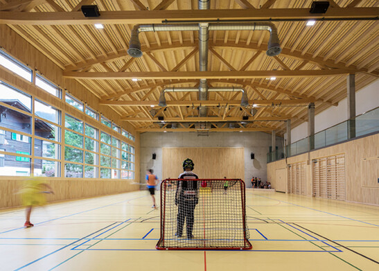 The former gymnasium in Lenk had long since ceased to meet requirements. The municipality in Simmental therefore had a multi-purpose hall built. On the one hand, it serves as a gymnasium for the local schools and sports clubs. In addition, the hall has a large, well-equipped stage that is over 10 meters deep. In addition, the hall also has a kitchen and various adjoining rooms and can thus be used in a very wide variety of ways.