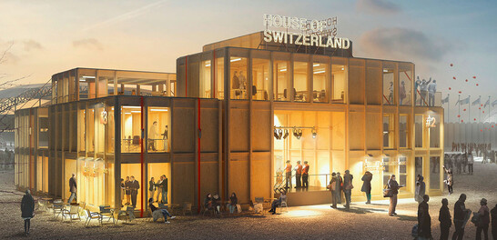 The building ensemble consists of 4 buildings with up to three floors, whose overall silhouette evokes the modernity of contemporary Swiss wooden architecture. In this way, "Presence Switzerland" wants to present to the world a building document that combines tradition with contemporary Swiss architecture and design, built with Switzerland's "only renewable resource" - wood.