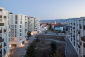 Attractive cooperative apartments with more living space were built on the highly frequented Bucheggplatz. Thanks to an increased utilization rate and revised building regulations, the buildings are larger and higher than their predecessors. Rooms such as kitchens, dining rooms and staircases face the street. Thus, the private living rooms and bedrooms are better protected from noise. The floor plan is chosen in such a way that frontal views into the opposite apartments are avoided. Towards the south, the apartments open onto a spacious inner courtyard, which is optimally protected from street noise.