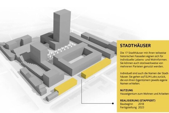 The Lokstadt townhouses - like the entire site - are designed according to the goals of the 2000-watt society. They are built according to the Minergie-Eco standard, and special attention is paid to the choice of materials. For this reason, the townhouses are largely made of wood from the first floor up. The wooden construction remains clearly visible with the columns and beams in the interior. The ARGE KilgPopp Architekten and Baumberger & Stegmeier Architekten designed the townhouses with the partially historic facades. Timbatec was allowed to accompany the planning team in the areas of structural analysis, fire protection and works planning.