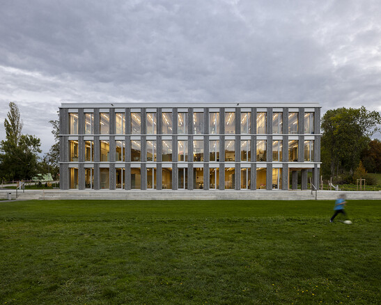 The structure is designed according to a post-and-beam principle. The load-bearing elements are made entirely of timber, including the cores of the vertical circulation, which are made of encapsulated CLT panels. A wood/wood ribbed ceiling, supplemented by a weighting layer that allows partial integration of the building services, offers a fast execution and perfectly fulfils the sound insulation requirements.