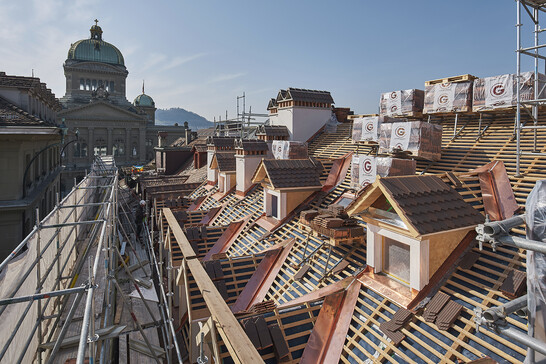 Ventilation, cooling and cabling had to be accommodated and static requirements met without severely altering the buildings. "High-tech in historic preservation" was called for. Today, intercepting structures, so-called explosive structures made of wood, absorb the forces from the upper floors and transfer them downward.