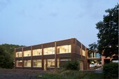 The work and group rooms as well as the spacious school kitchen are oriented to the north. On the one hand, this allows a view of the nearby forest, and on the other hand, the rooms are less warm in summer. On the warmer south side, with a view of the neighboring buildings, are the access zones and the foyer.