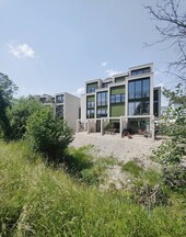 Eight terraced single-family houses were built on the outskirts of Zurich using a hybrid construction method. Four houses were combined into one building. The single-family houses consist of a basement, three full storeys above ground and an attic storey.