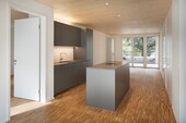 Hollow box elements with a spilt filling and mineral wool in the ceiling element were chosen for the construction of the floor ceilings. These wooden ceilings remain visible in the apartments and give the rooms a pleasant, homely atmosphere. The construction also performs very well in terms of acoustics. Acoustic measurements prove that the increased requirements are met in this building. On the one hand, this testifies to a good construction of the ceiling, and on the other hand to a clean execution of the construction work. When buildings are ring-horny, this is often due to poor workmanship. This is because sound seeks its way through leaky joints, fasteners that have been driven in too deeply or incorrectly installed setting strips of underlay floors.