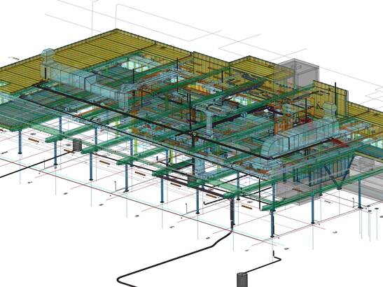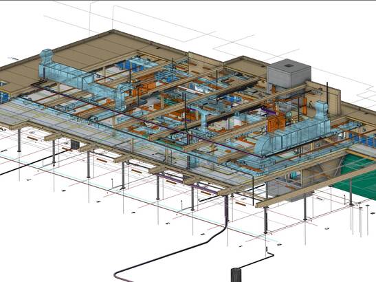 In the 3D model of the "timeout" staff restaurant at the Aarau Cantonal Hospital, all the information from various specialist planners come together.
