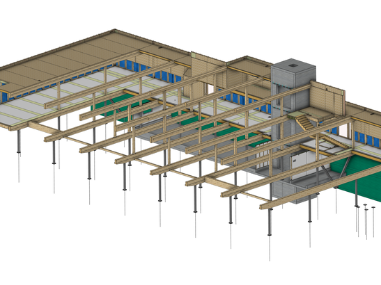 Wooden buildings can be prefabricated and are ready after a short construction time. This is one of the great advantages of timber construction. To make this possible, construction projects are planned down to the last detail before construction begins. A so-called digital twin, including all information on the construction project, is produced.