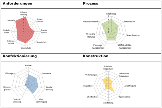 Based on the idea that in this approach the «noise» of the interface problems of current BIM - projects can be eliminated, new structures for a future real-time, cross-company and collaborative planning in timber construction have been exploratively and tested in Living Labs. In parallel, a performance matrix was developed that provides guidance on how architects and specialist planners can manage progress of a project in prefabricated timber construction in a concerted manner that is appropriate for timber construction.