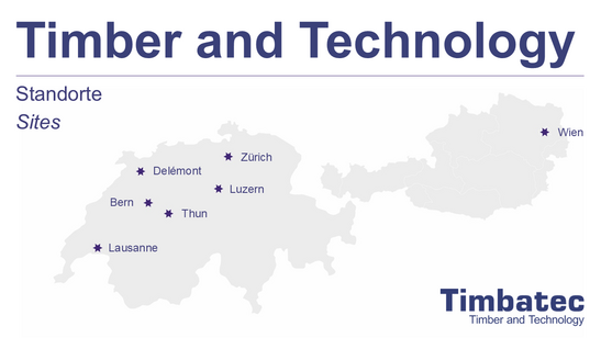 With our seven locations, we serve customers and construction projects from close proximity. Timbatec attaches great importance to ideal office locations. That is why you will find our offices close to the train station. We look forward to your visit in Zurich, Bern, Thun, Delémont, Lucerne, Lausanne and Vienna.
