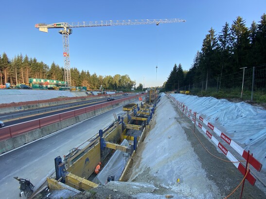 Im nächsten Arbeitsschritt werden die Holzträger als Überdeckung der zweiten Fahrbahn eingebaut. Für die Holzbaumontagearbeiten ist jeweils in der Nacht eine geänderte Verkehrsführung notwendig. Seit Ende März 2021 bis voraussichtlich Mitte Mai 2021, wird der Verkehr nachts jeweils einspurig geführt.