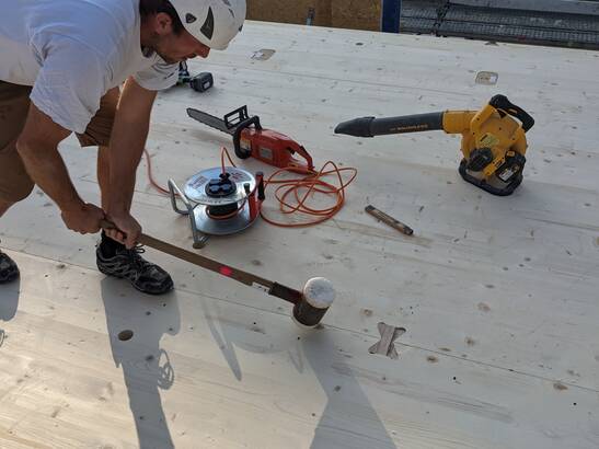 Die TS3-Technologie ist ein neues Bausystem mit einer biegesteifen Verbindung in der Ebene zwischen Brettsperrholzplatten. Die TS3-Verbindung mittels Fugenverguss ermöglicht den Bau von unterzugsfreien Skelettbaustrukturen aus Holz mit schlanken, punktgestützten Platten. Durch Aktivierung der sekundären Tragrichtung können mit Holz die gleichen Decken gebaut werden wie mit Stahlbeton, und das lediglich mit herkömmlichem Brettsperrholz und der TS3-Verbindungstechnologie. Für die Herstellung von TS3-Fugen schult die Timber Structures 3.0 AG Zimmereien und Holzbauer. Mehr dazu finden Sie hier.