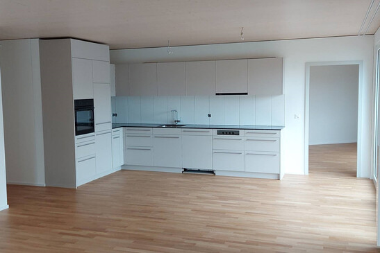 Bei der Aufstockung in Holz sind die Aussenwände aus einer Ständerwand. Aussen ist die Ständerwand mit einer Aussenwärmedämmung versehen und mit einem Abrieb abgeschlossen. Das Dach bilden Hohlkastenelemente, die den Flachdachaufbau tragen.
