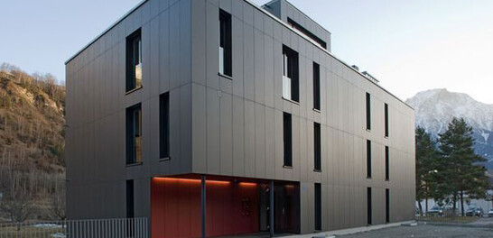 Das Baugrundstück liegt an zentraler Lage an der Furkastrasse in Bitsch. Prominenter Nachbar Richtung Goms ist das neue Gebäude der Raiffeisenbank: ein weisser, monolithischer Kubus. Damit ergab sich eine architektonische Herausforderung, ein valables Gegenüber zu dieser starken Präsenz zu schaffen. Geplant war ein MFH in Minergie-Standard mit Auto-Einstellhalle.