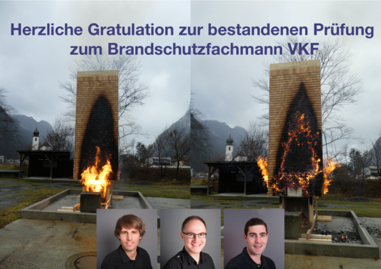 Michael Hollenstein, Fredy Birchmeier et Philipp Lutz réussissent l'examen de spécialiste en protection incendie AEAI