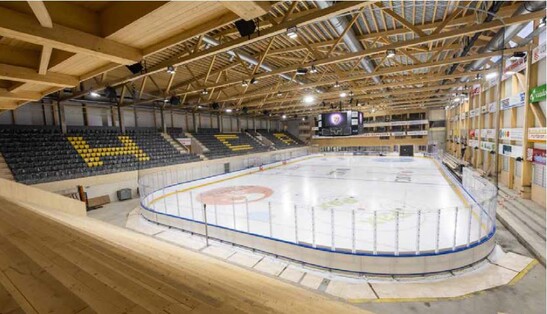 Le site HC Ajoie a commencé sa nouvelle saison de hockey sur glace début septembre. Pour la première fois depuis 1993, il évolue à nouveau en première ligue - et qui plus est dans le nouveau Raiffeisen Arena à Porrentruy, un véritable modèle de construction en bois régional. Du bois.