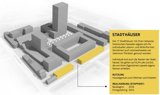 Là où l'on construisait autrefois des locomotives, un espace de vie urbain plein d'idées d'avenir est en train de naître au cœur de Winterthur. La construction en bois exemplaire "Krokodil" et la première étape des maisons urbaines sont achevées et occupées. La deuxième étape de construction des maisons urbaines a maintenant commencé.