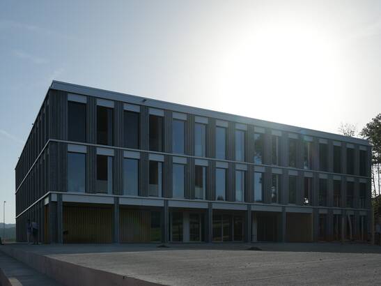 Ce projet montre de manière impressionnante que les bâtiments éducatifs peuvent aujourd'hui être construits en bois sans compromis. "De l'arbre au bâtiment scolaire", tel est le titre de travail qui a servi de base à la réalisation d'un reportage sur ce projet. Le film montre le déroulement de la sélection des arbres dans la forêt communale, l'abattage et le transport, le traitement industriel et la fabrication, les travaux de construction en bois sur le chantier jusqu'à la construction du bâtiment fini.