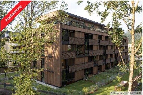 proHolz Tirol décerne tous les quatre ans le prix de la construction en bois du Tyrol en collaboration avec la Chambre des techniciens civils | Arch+Ing du Tyrol et du Vorarlberg. Le quartier naturel Weissache à Kufstein reçoit une reconnaissance pour son utilisation exemplaire du bois.