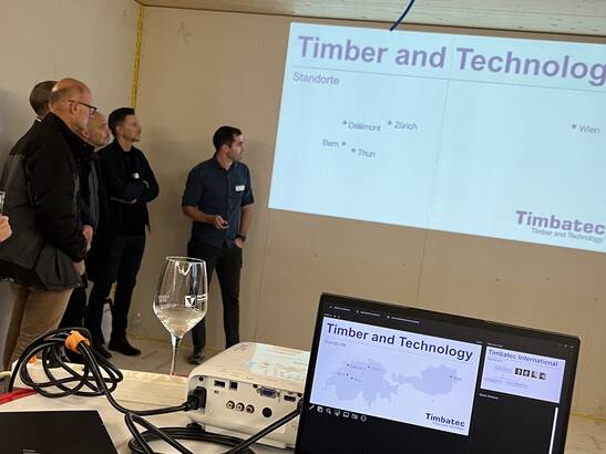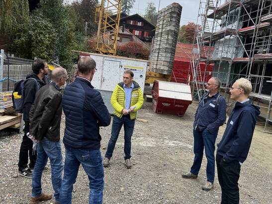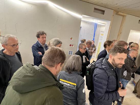 Le nouveau bâtiment «Scherli», construit en bois durable et selon les normes Minergie-P, convainc tant sur le plan esthétique que fonctionnel. Les visites guidées du bâtiment et les mots de bienvenue de Michael Leuenberger ont été suivis d'exposés introductifs des architectes (Adrian Habegger et Andy Plüss), du bureau d'ingénieurs en construction bois (Philipp Lutz et Lukas Rüegsegger) et de l'entreprise de construction bois (Nik Stuber).