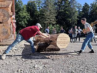 Après une phase de planification et de conception d'environ quatre ans, les travaux de construction du nouveau bâtiment destiné à remplacer l'ancien centre forestier situé à l'Eschenbergstrasse ont commencé. Symbole du projet au cœur de la forêt et de la collaboration fructueuse, Christa Meier, conseillère municipale chargée de l'urbanisme, et Stefan Fritschi, conseiller municipal et chef du département Stadtgrün Winterthur, ont scié ensemble un disque de bois sur un tronc d'arbre à l'aide d'une scie à deux mains, en présence de nombreux invités issus de la politique, de l'administration et des entreprises de construction – un « sciage » plutôt qu'un « premier coup de pelle ».