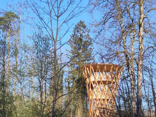 Avec ses 15 mètres de haut, cette tour d'observation innovante en bois est un point de mire architectural et offre des vues fascinantes sur la nature des plaines alluviales de la Thur. Ce projet a été réalisé dans le cadre du travail de master de Jan Hess à l'EPF de Zurich - un vrai projet de talent! Félicitations pour le résultat.