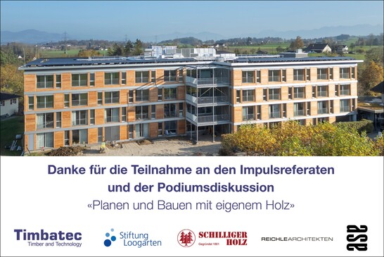 «Celui qui construit avec son propre bois obtient un bâtiment avec une plus-value et se crée en même temps un lien émotionnel avec sa propre matière première». Des exposés introductifs et une table ronde ont eu lieu sur le thème «Planifier et construire avec son propre bois» dans le «Esslinger Loogarten», un bâtiment de deux étages récemment surélevé.