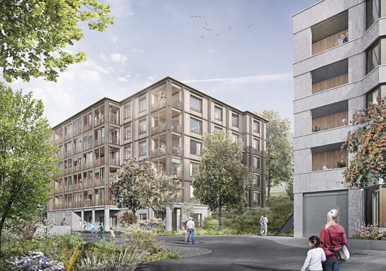 Une attention particulière est accordée à une conception adaptée au lieu et au voisinage ainsi qu'à une architecture de qualité. Les espaces intérieurs et les façades doivent convaincre par une matérialisation de qualité, tandis que le concept de technique du bâtiment mise sur des solutions modernes et durablement efficaces. Dans l'optique d'un mode de construction économique et d'une exploitation rentable, le projet sera réalisé conformément aux normes Minergie®-P-Eco. La compatibilité avec l'extension du parking souterrain du centre pour personnes âgées Du Lac voisin est également prise en compte, afin de garantir la poursuite des travaux de construction sans interruption. L'architecture prévue accorde une grande importance à la mixité des logements et des usages. Les séquences spatiales en structure modulaire comprennent des tailles de logements de 2 ½, 3 ½, 4 ½ et 5 ½.