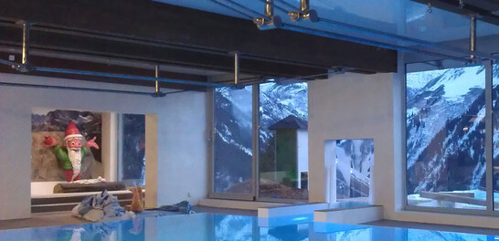 L'hôtel de contes de fées Bellevue à Braunwald dispose d'une piscine couverte attenante. La structure porteuse du toit a été réalisée à partir de cinq paires de poutres jumelles en bois lamellé-collé. Les poutres à une travée couvrent environ 10 mètres. En raison d'une surcharge, deux de ces poutres ont cédé à la flexion. Le long du bord du bassin, la hauteur du local devait être maintenue, tandis qu'au-dessus du bassin, l'espace disponible était suffisant.