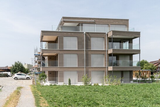 Les cages d'escalier bétonnées ultérieurement représentaient un défi, car les appartements n'étaient pas directement accessibles par des escaliers. La construction en bois a pu être érigée rapidement et sans éléments en acier grâce à la précision d'ajustage. Les souhaits individuels des clients ont pu être pris en compte de manière flexible dans la planification de l'exécution.