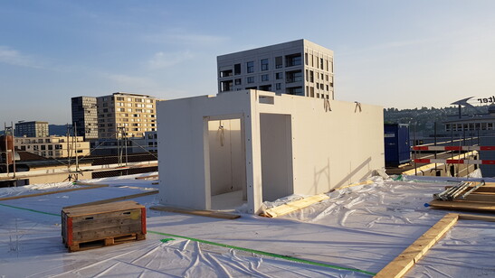 Timbatec a développé en 2019 le procédé efficace et respectueux des ressources avec les noyaux de cage d'escalier bétonnés ultérieurement pour la maison Krokodil à Winterthour, un immeuble en bois de 248 appartements. Depuis, il est appliqué à un grand nombre de bâtiments en bois de plusieurs étages.